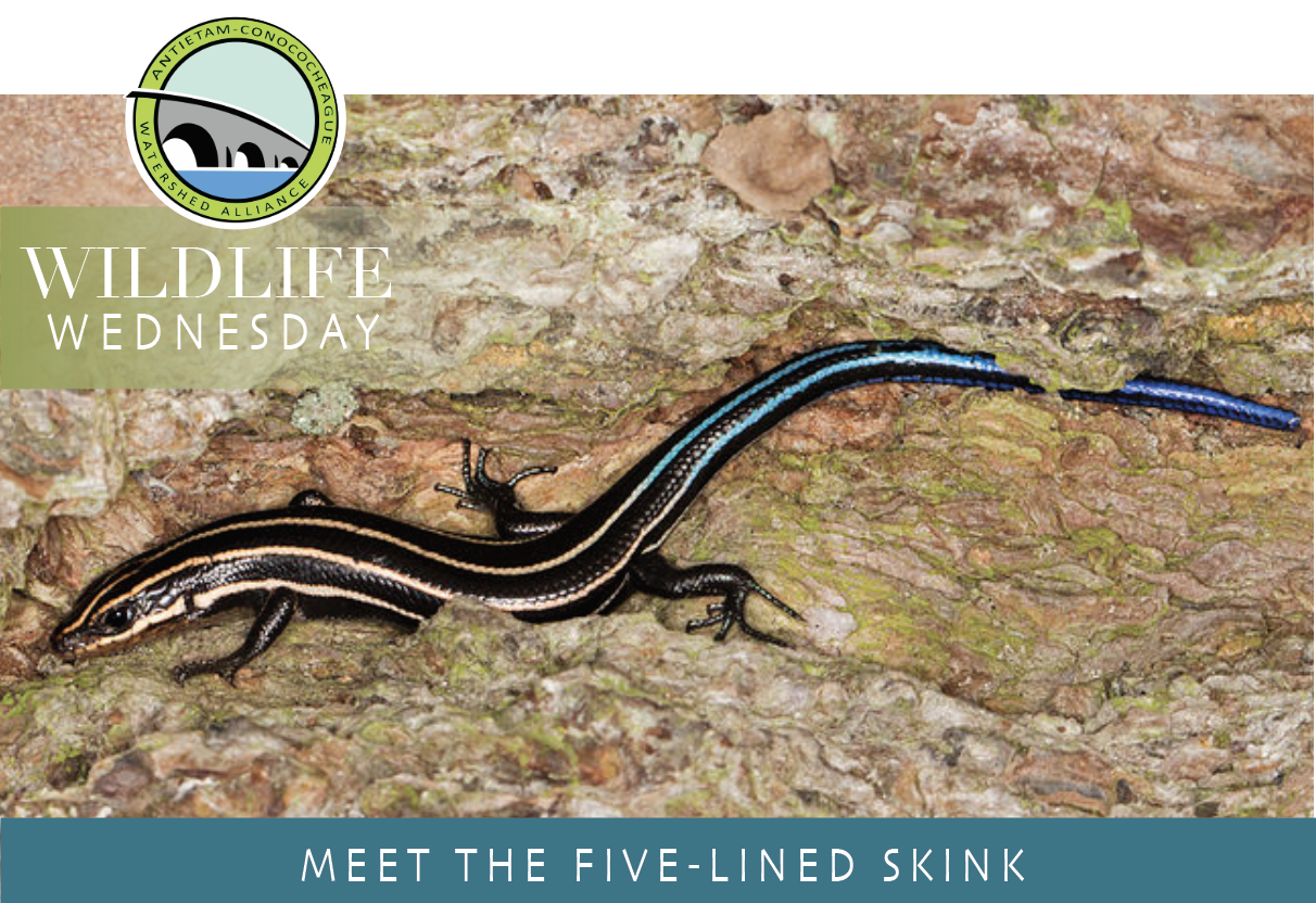 The common five lined skink (Plestiodon fasciatus) is a small lizard often found under rocks and in moist habitats, you may even find one in your backyard or on your porch. This skink is very recognizable in its younger form, having an eye-catching blue tail until adulthood. This species eats insects and spiders, millipedes, crickets, grasshoppers, and sometimes they even consume smaller vertebrates. These skinks spend most of their time laying under rocks and moist cover or basking in the sun. This skink is hunted by a plethora of predators, and in order to successfully evade these creatures, it often stays near crevices to escape into. In dire situations, the skink is able to disconnect its tail. This species helps to maintain the food chain by serving as a predator to insect species and as prey to larger mammals and birds. To learn more about the common five lined skink: https://animalia.bio/american-five-lined-skink?taxonomy=16