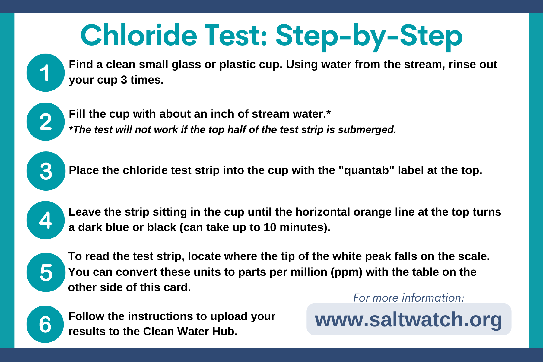 ACWA Community Science volunteers will be monitoring our local streams for road salt (chlorides) and submitting the data to the Clean Water Hub. We will be using their SALT-WATCH kits and easy instructions to collect our data.